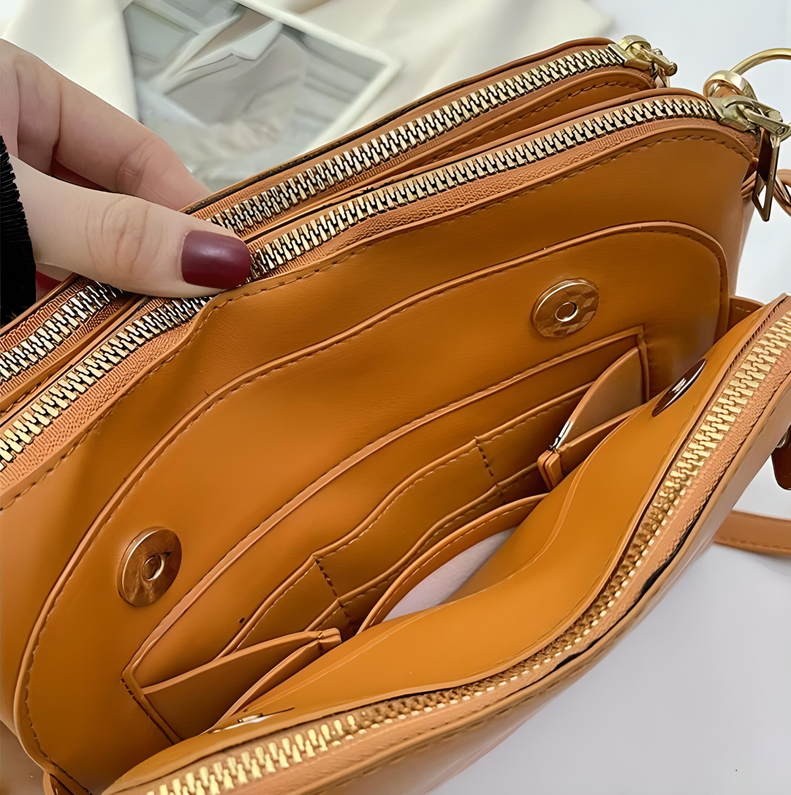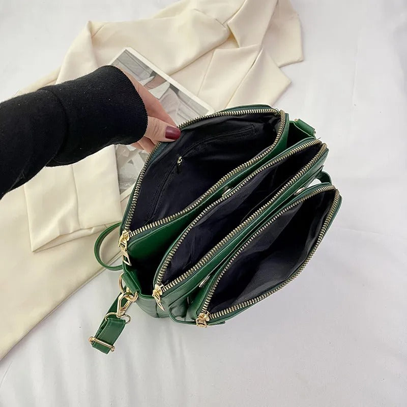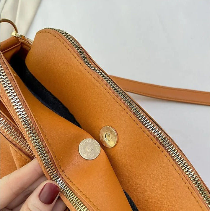 Feita em couro PU de alta qualidade, não apenas oferece durabilidade e resistência ao desgaste, mas também adiciona um toque de sofisticação ao seu visual.Combinando funcionalidade, estilo e praticidade. É a escolha certa para quem deseja estar sempre preparada e elegante.O grande diferencial desta bolsa é o compartimento e rápido acesso, especialmente projetado para acomodar até 9 cartões e um celular. Conta ainda com seus 5 espaçosos compartimentos, onde terá espaço de sobra para armazenar todos os itens essenciais do seu dia a dia, desde o tablet até maquiagem e medicamentos.
