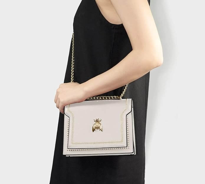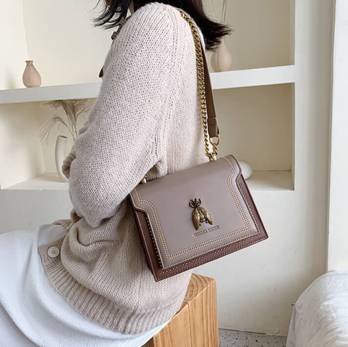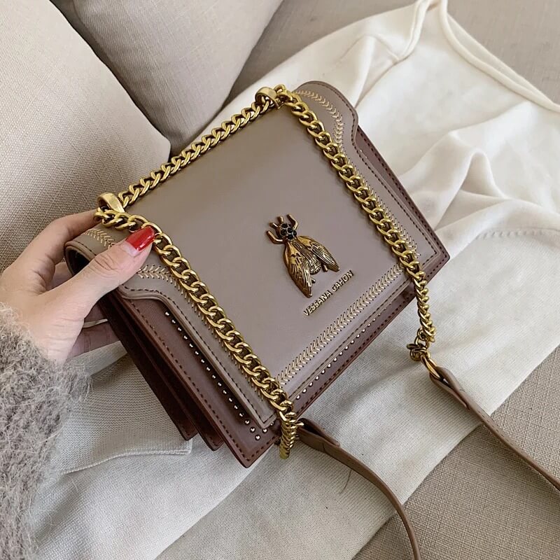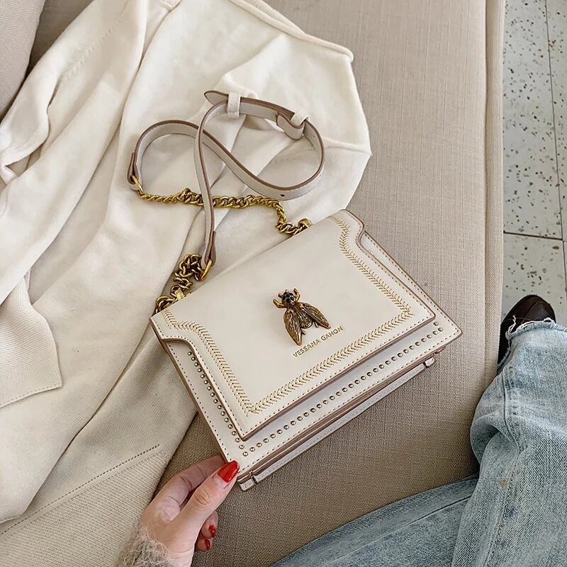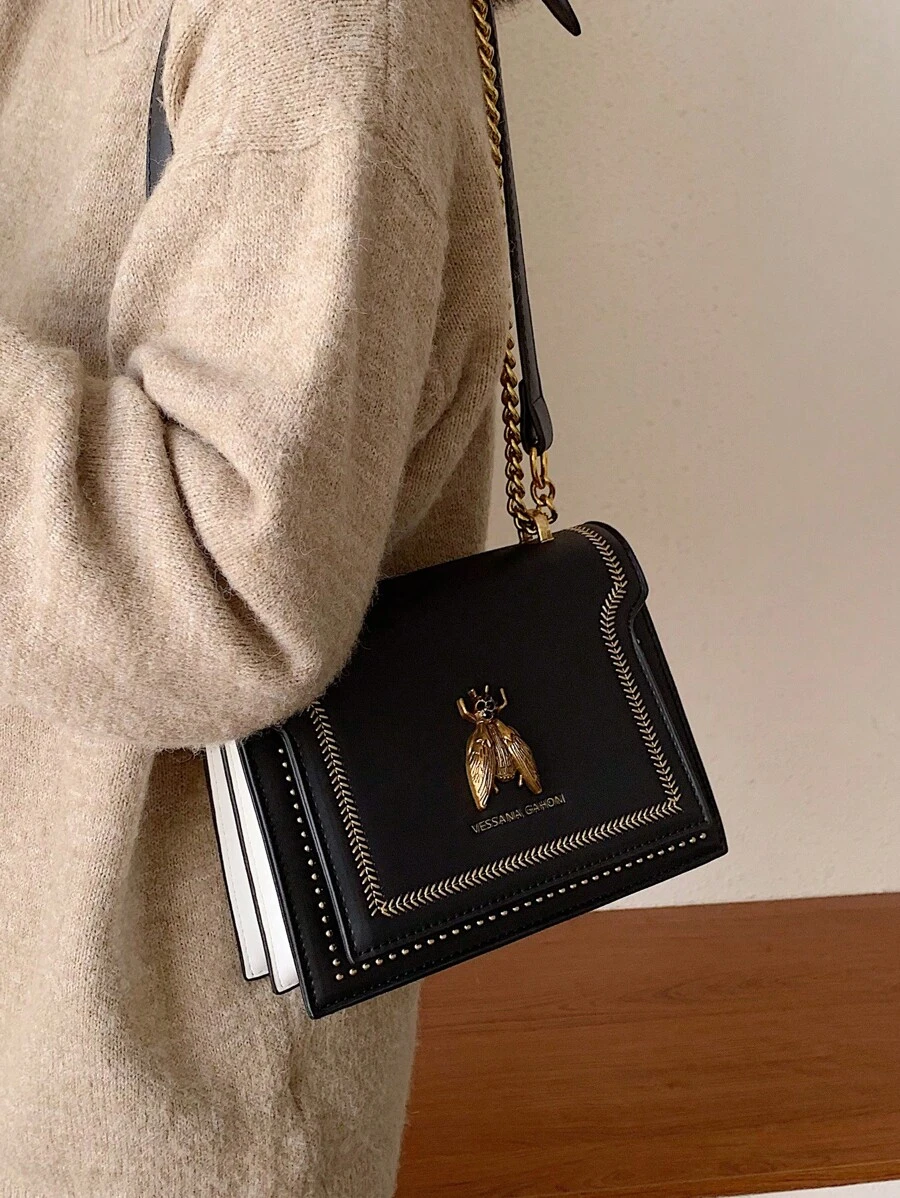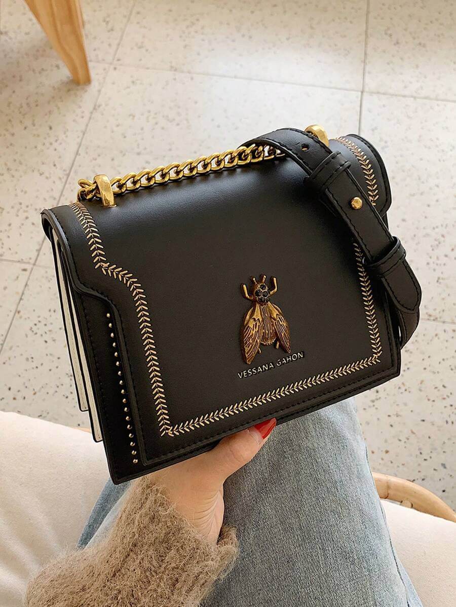 Totalmente apaixonante, a bolsa Beetle é aquele item fashionista que faltava no seu closet! Perfeita para te acompanhar dia e noite, a Beetle imprime modernidade ao visual. Destaque para a corrente que arremata a alça tiracolo e a glamourosa aplicação do inseto dourado frontal, detalhes que deixam essa bolsa ainda mais trendy. Aposte!
