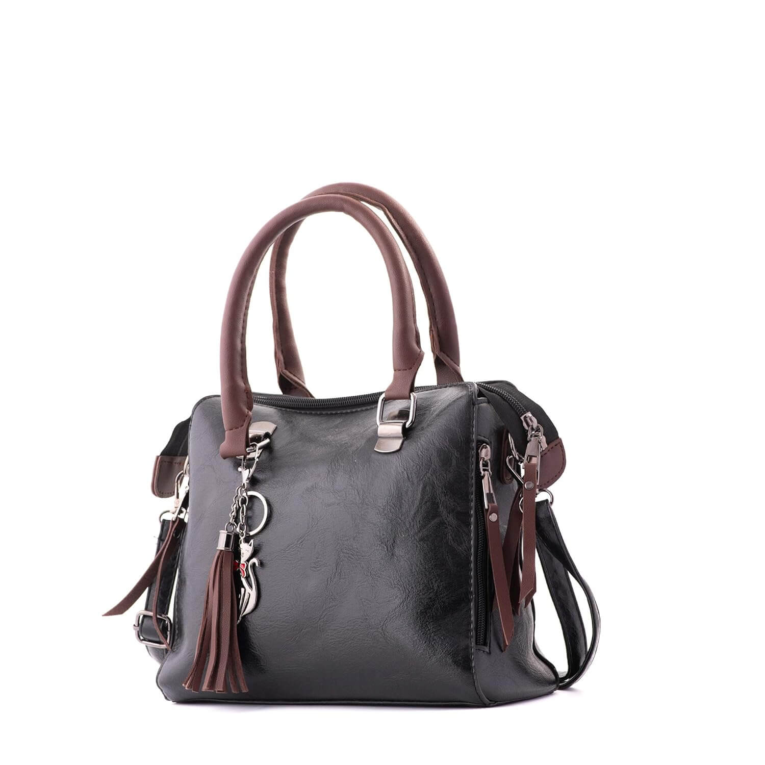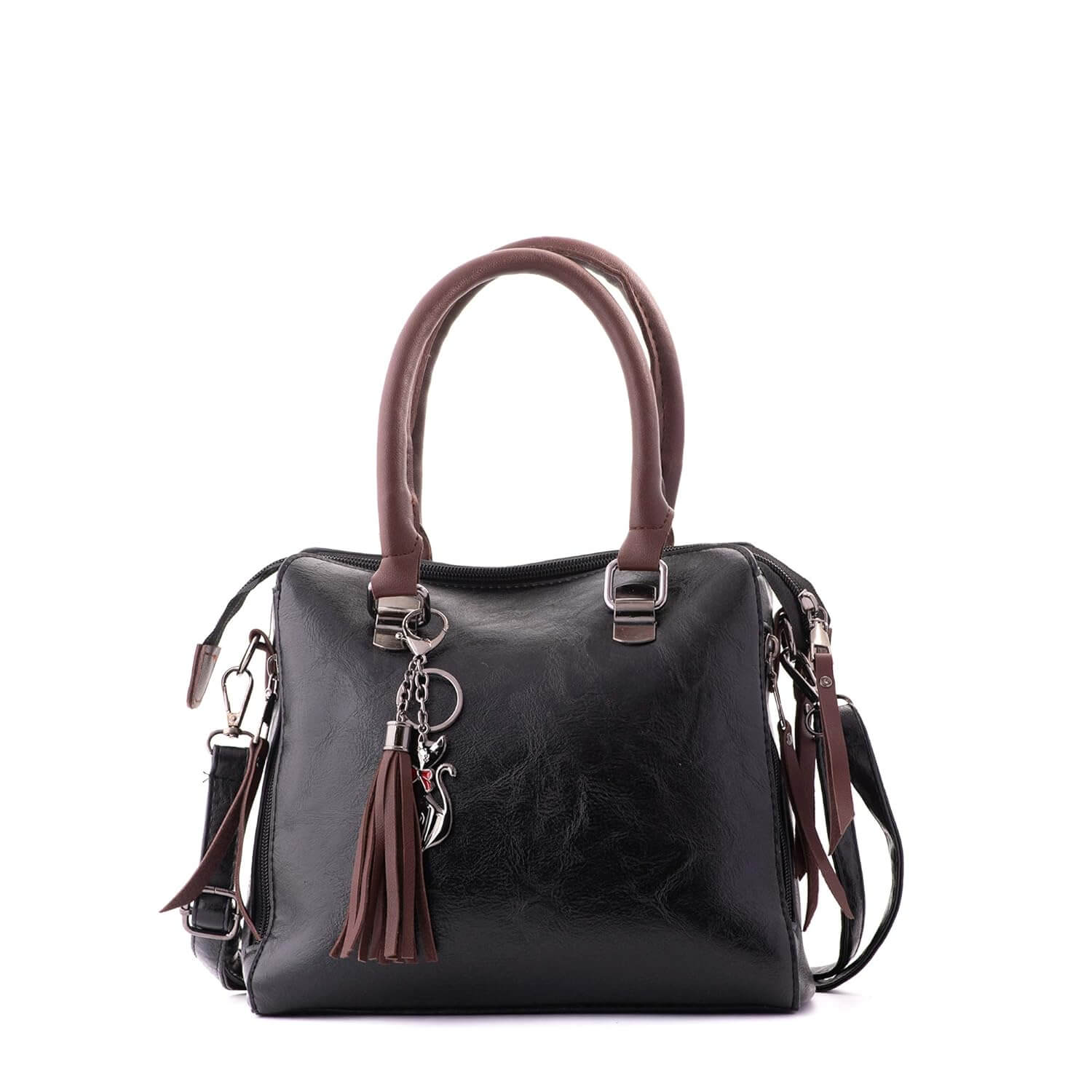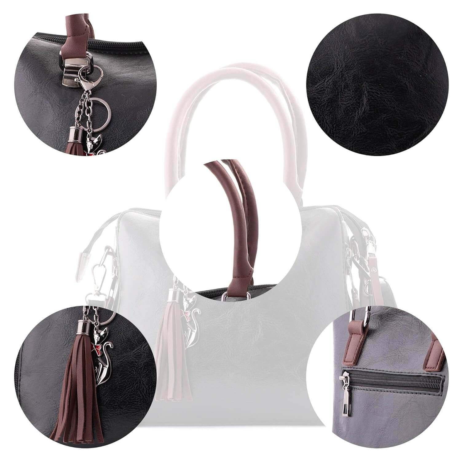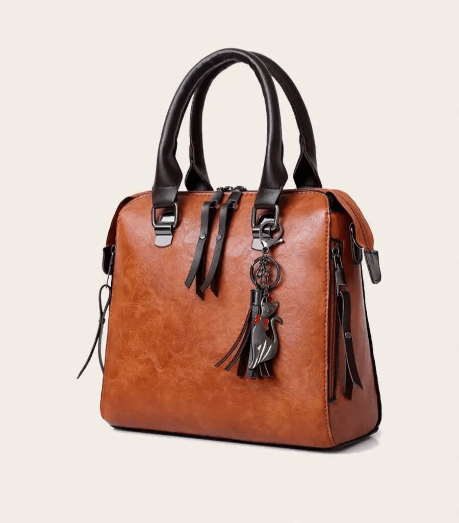 O design elegante desta bolsa inclui uma alça removível e ajustável para maior versatilidade. A costura cuidadosa na parte externa adiciona um toque de sofisticação, enquanto o interior totalmente forrado com tecido sedoso oferece um ambiente seguro para seus pertences. O estilo vintage é acentuado por um pingente fofo, resultando em um visual elegante e perfeito.